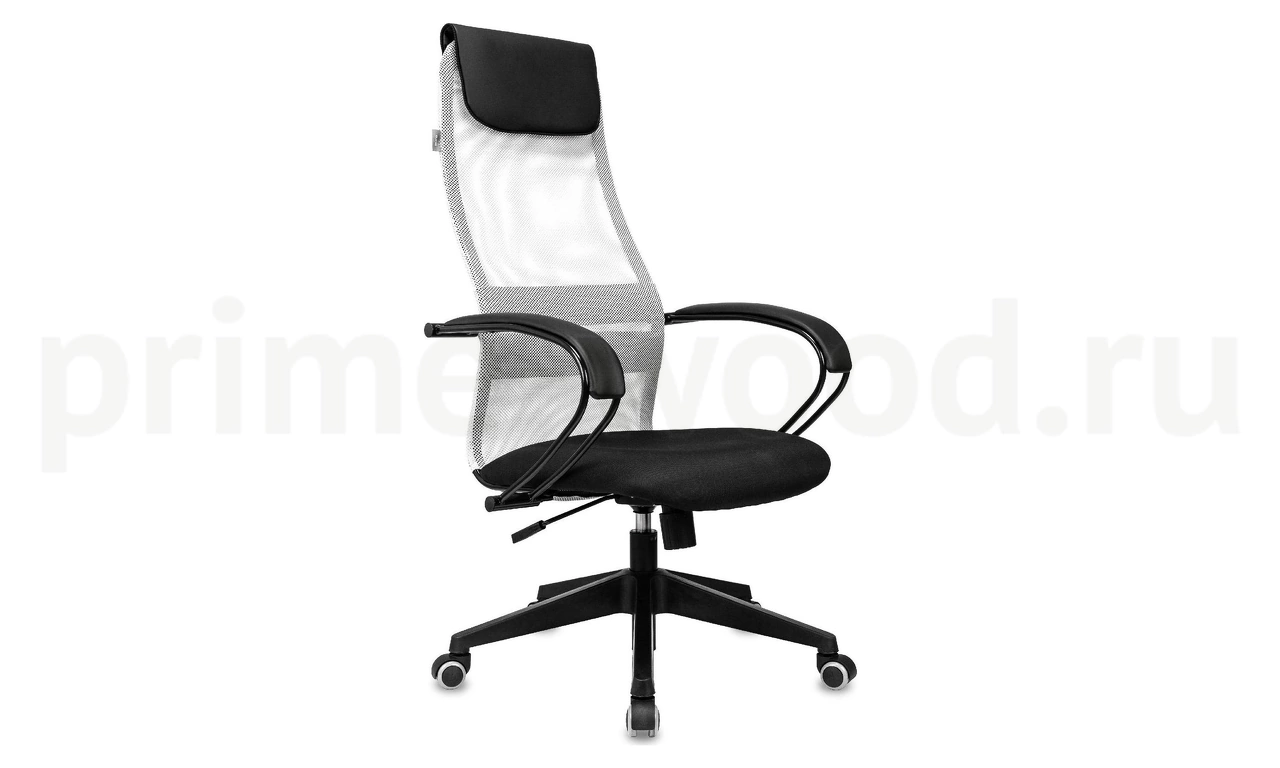 Современное кресло для руководителя CH-607 черный TW-01 сетка/ткань с подголовником, крестовина пластик.